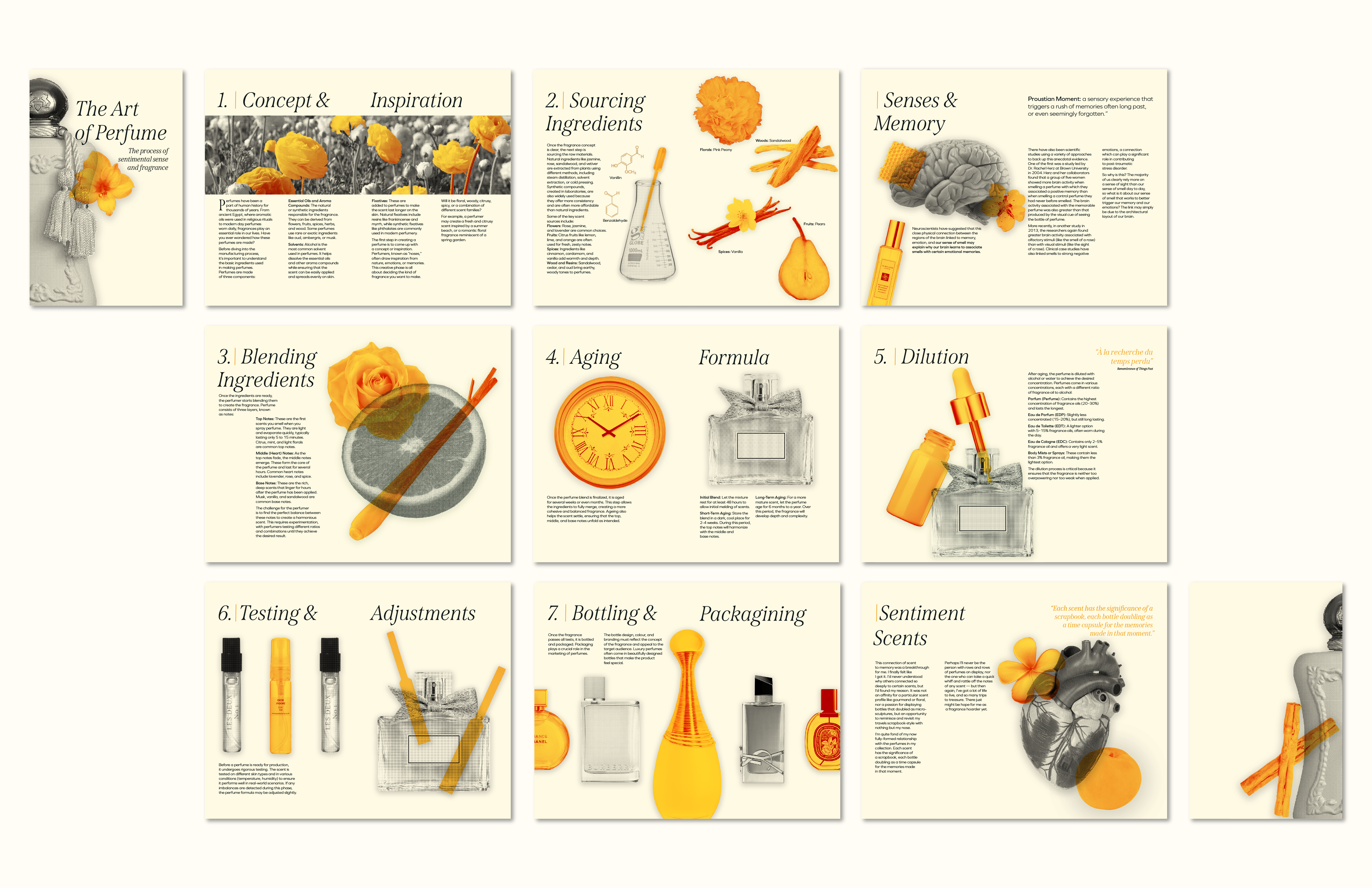 This zine showcases how perfume is made and integrates how scientific and how sentimental perfume can be. Showcasing the beauty of the Proustian Moment. This design won Flux 2025 and Salute 2025.