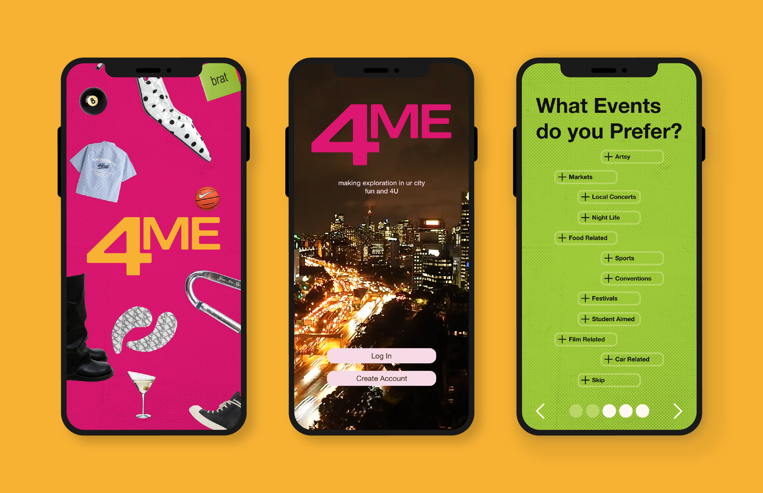 This app is designed for people to find places locally that are 4 them. You are to take a survey that asks what you're looking for and who you are, and based on that you get recommended places that make you say and feel “this is just 4Me!”
